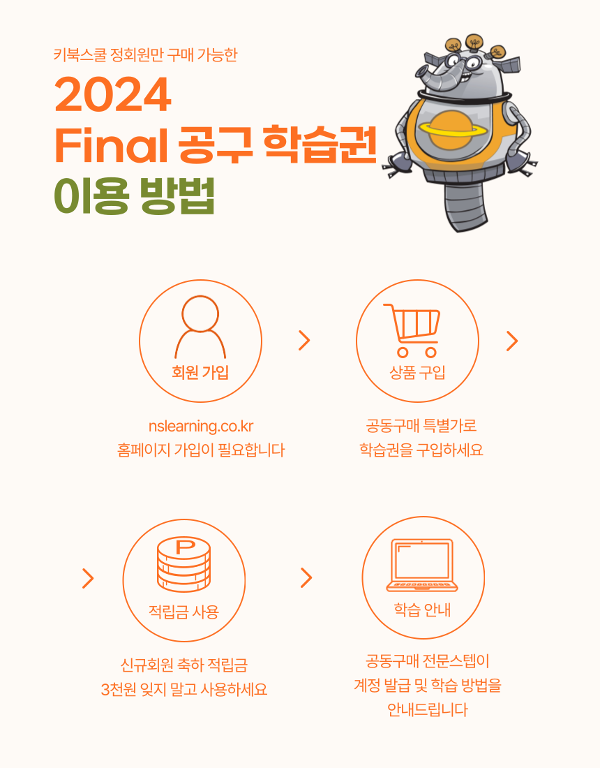 2. 구매확정 후 학습 계정(ID)을 부여한 시점부터 서비스를 이용한 것으로 간주하며, 전자출판물의 특성상 짧은 시간 안에 전체 자료 열람 등이 가능하므로 환불이 불가능합니다.